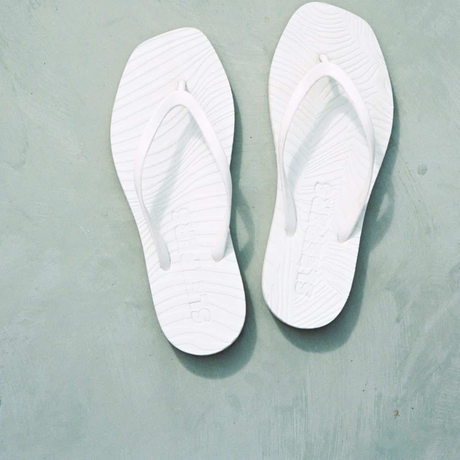 Flip Flops fra Sleepers med deres signaturdesign, den karakteristiske firkantede formen. Såle i lett, naturgummi som følger fotens natulige kurve og tilpasser deg foten. Med en tynn, minimalistisk stropp i behagelig naturgummi.